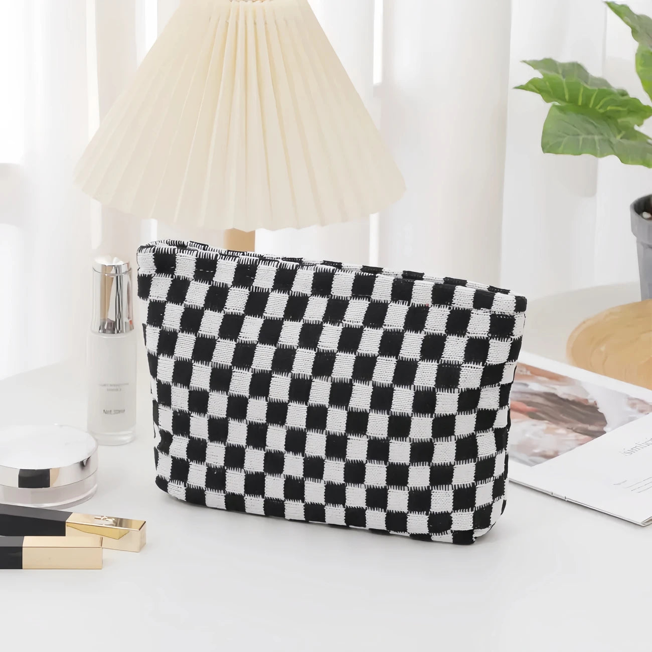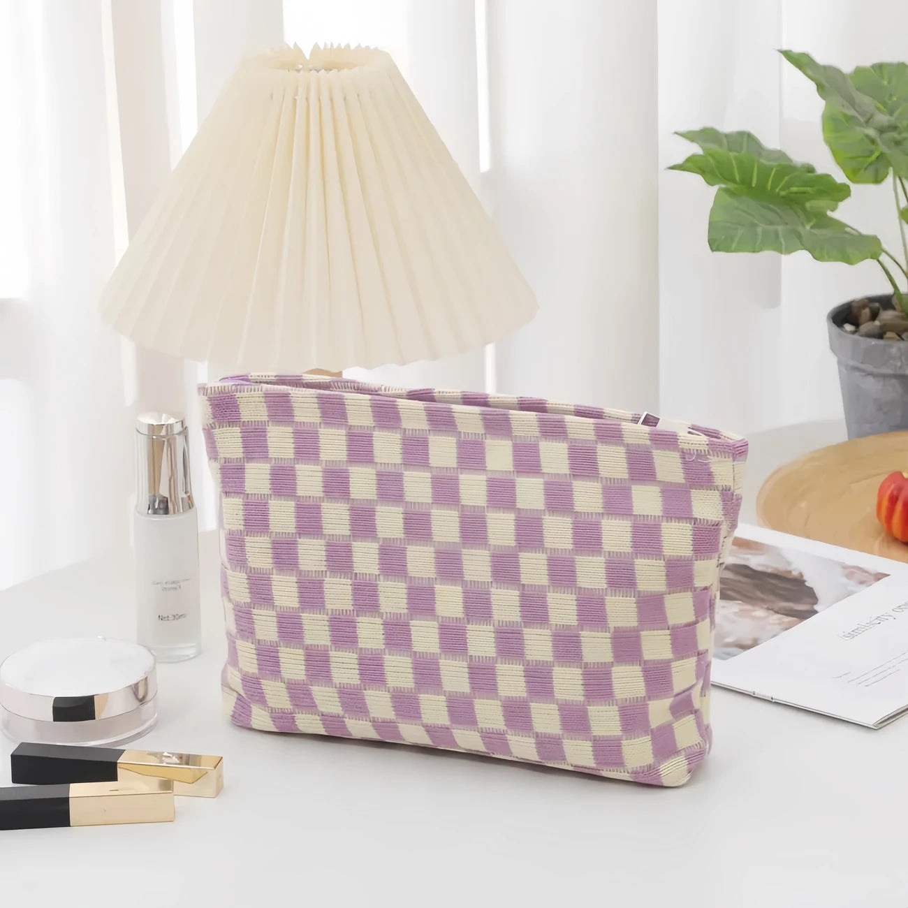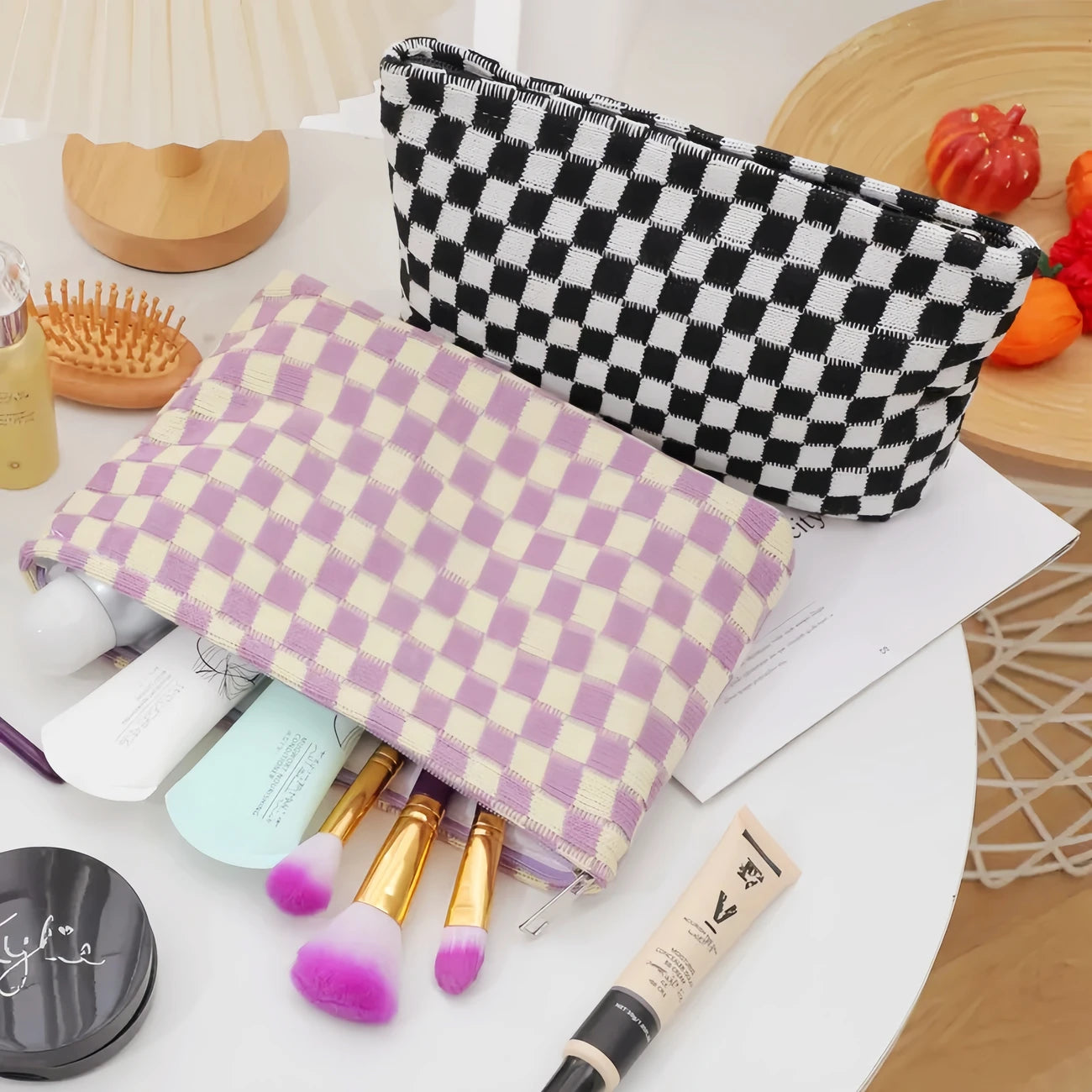 Stylish Checkered Makeup Bag, travel Toiletry Bag Organizer, Cute Makeup Brushes Storage. 6 Awesome Colors! Great quality!