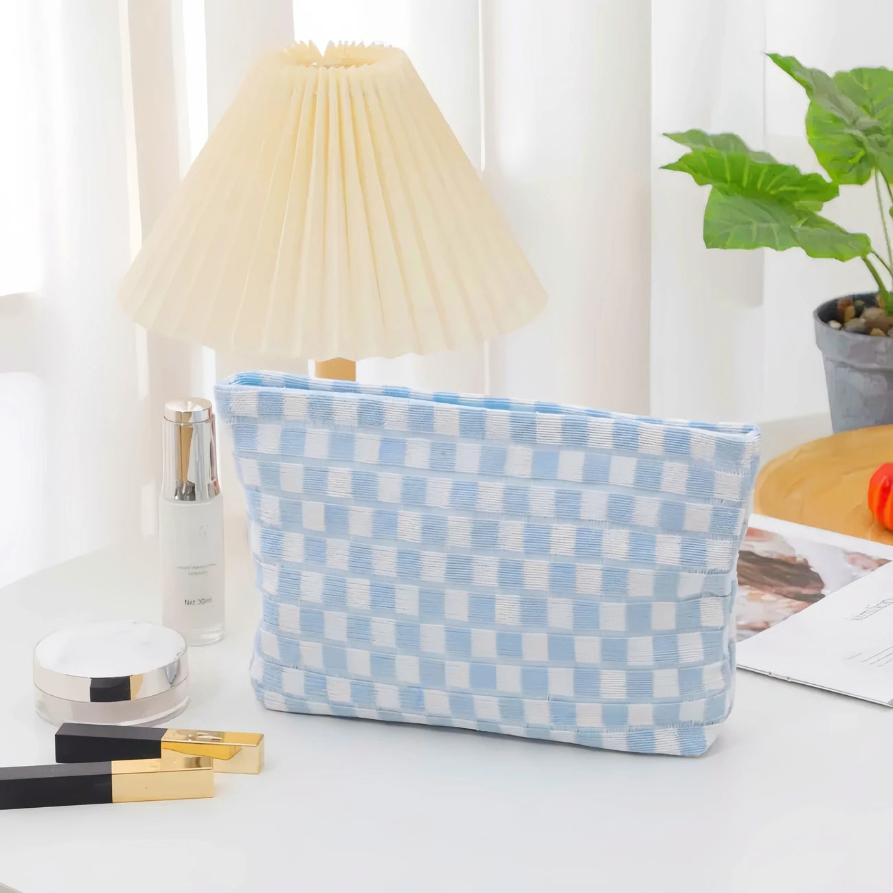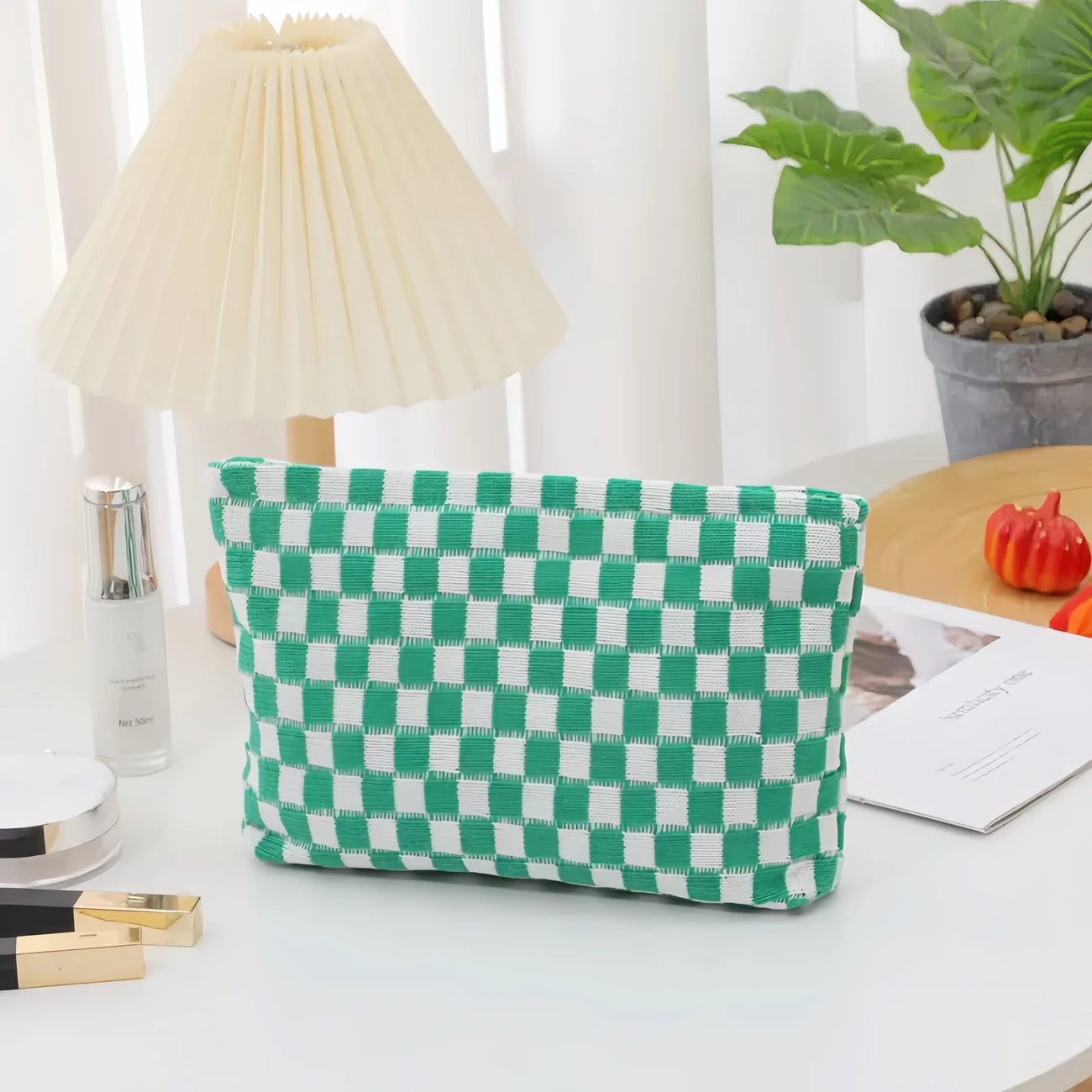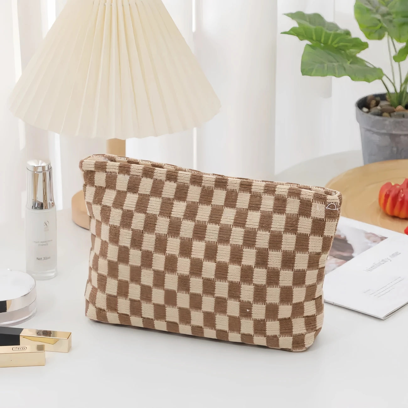 Stylish Checkered Makeup Bag, travel Toiletry Bag Organizer, Cute Makeup Brushes Storage. 6 Awesome Colors! Great quality!