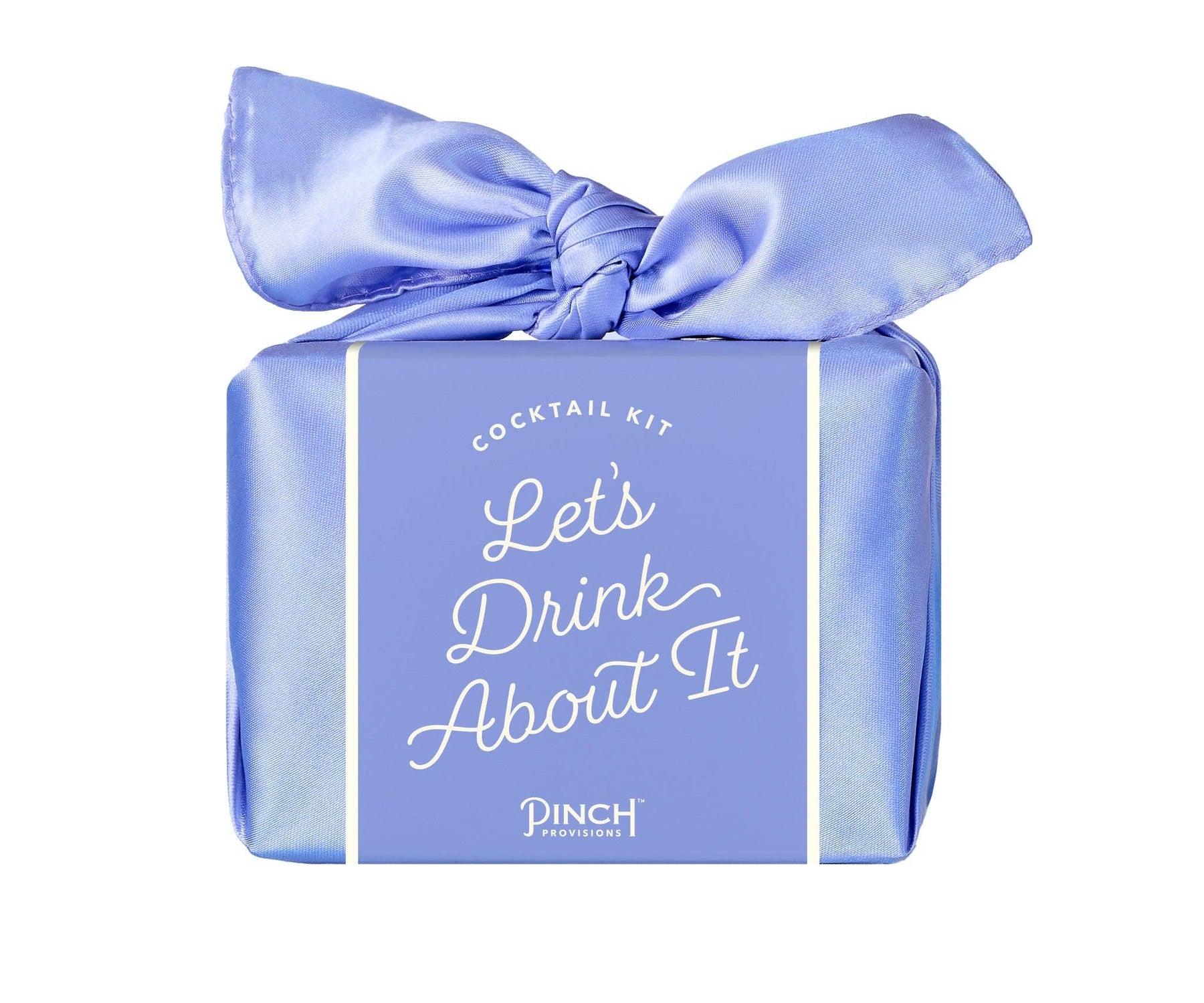 Shake well and serve our Cocktail Kit in the perfect shade of periwinkle. This delightful assortment of 11 bartending essentials & accessories is ready to gift in a Furoshiki-style bow box. Whether you’re hosting a pool party or just having a fun night-in, sip in style with 2 spherical ice cube molds, 2 fl.oz. simple syrup, gold jigger, gold cocktail picks (2), edible gold drink glitter, coasters (2), decision coin, and a cocktail recipe booklet. Just add the alcohol! Also available in Olive Green. party gifts, beverage gifts, aperol, champagne, tonic, partying, care package, bow box, wrapped box, bar tool set, bar gifts, thanksgiving, Halloween gifts, cocktail gifts, cocktail accessories, spritzy, trendy, gift box, alcoholic, non-alcoholic, housewarming, unique, best-selling, for chefs, for mixologists, mixology, bartending, graduation gift, house decor